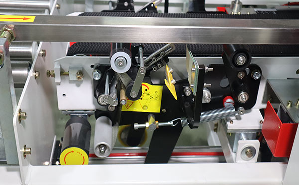解決方案:重新調整上機頭高度,使其與紙箱高度匹配,確保折蓋桿能夠將箱蓋完全壓合。對于材質偏硬的紙箱,可適當增加氣動折蓋機構的壓力(若設備配有),或在紙箱進入前輔助預折蓋邊。